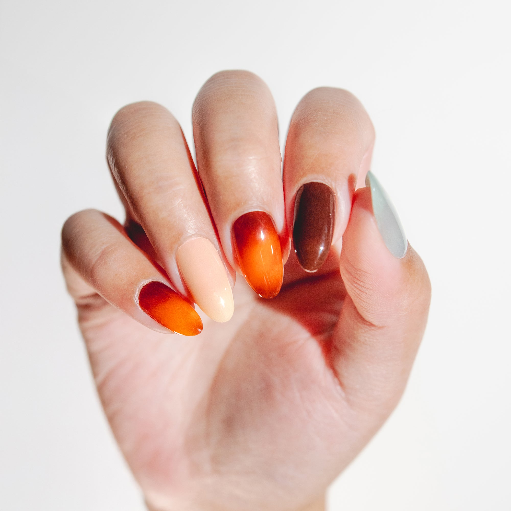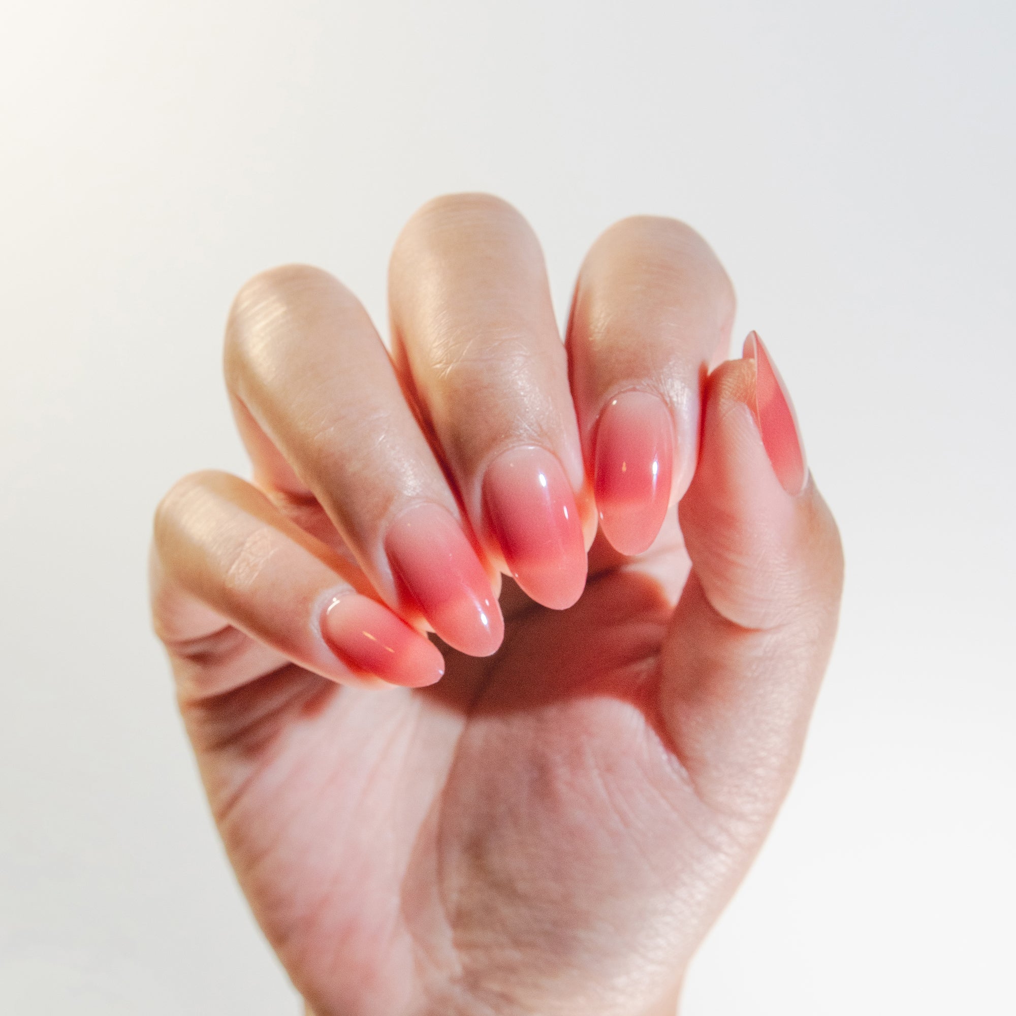 Semi-cured gel nail strips are thin strips of gel polish and ours come 60% cured. They’re flexible, can be adjusted to fit your nails, and can be fully cured under a UV lamp for 60 seconds—giving you nails that will last up to 3 weeks..